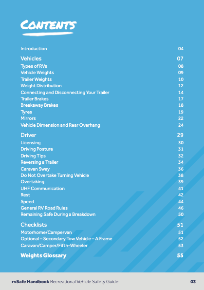 The rvSafe handbook remains your comprehensive guide to safe and responsible RV travel. It has been developed to support improved behaviours on our roads and reduce risks associated with overloaded and/or non-compliant vehicles.